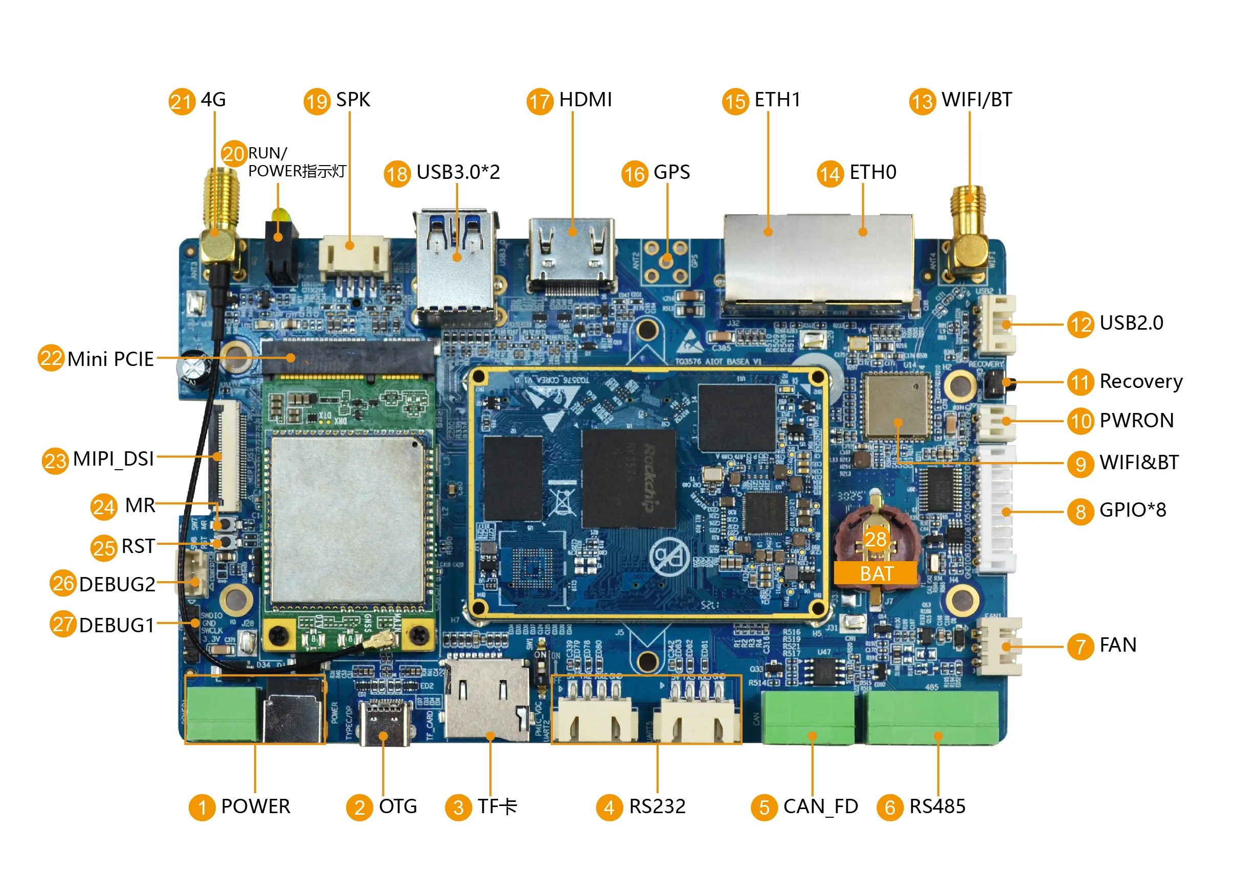 图为 TQ3576_AIOT_BASEA_V1正面图